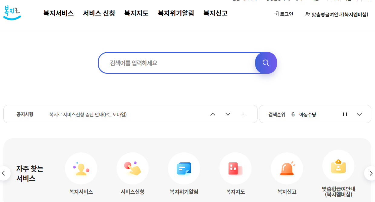 복지로 화면입니다