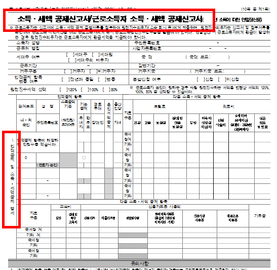핵심 서식 소득·세액 공제신고서 (별지 제37호 서식)