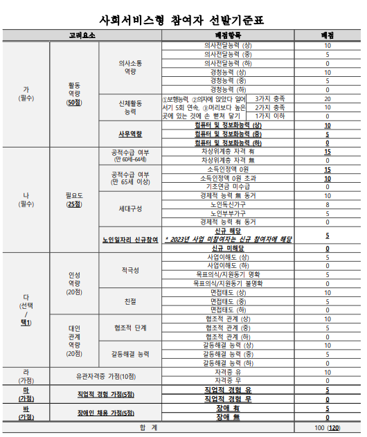 사회서비스형 참여자 선발기준표