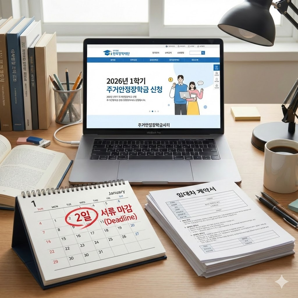2026년 1학기 주거안정장학금 신청자 필독. 1월 2일 마감되는 서류제출 및 가구원 동의 절차와 까다로운 원거리 심사 기준(교통권)을 완벽하게 분석해 드립니다.